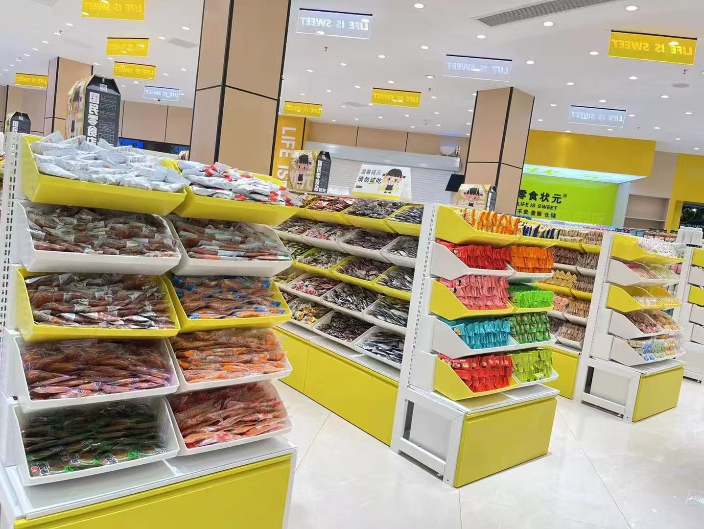 零食店货架的精简介绍,聚焦主流类型、材质、核心特点与实用要点,方便快速选型: